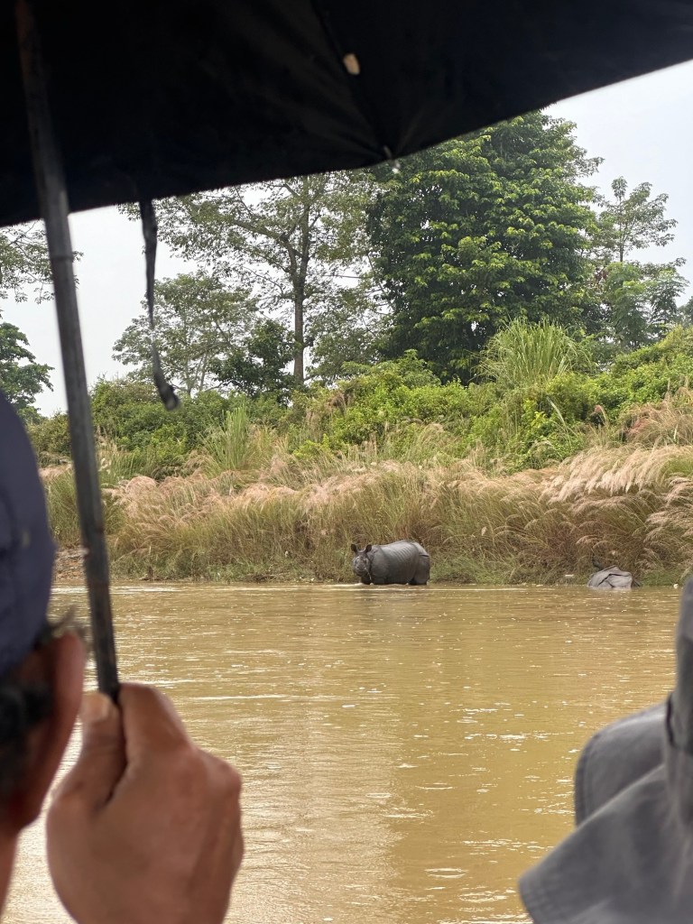 In the afternoon, the weather cleared and we spotted a mother and baby rhino eating their way through the fields. A beautiful sight, sadly disturbed and scared off, by our guide’s sudden coughing 😂 feedback was swiftly delivered by Carmen.