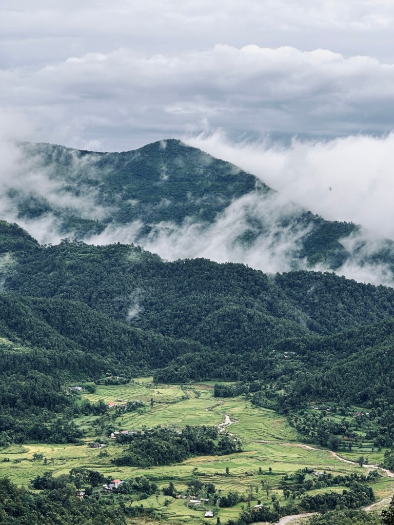 Before we know it, the skies clear and we manage to wander through Bandipur town and see the stunning mountain views surrounding us. We’re literally sat in the clouds.