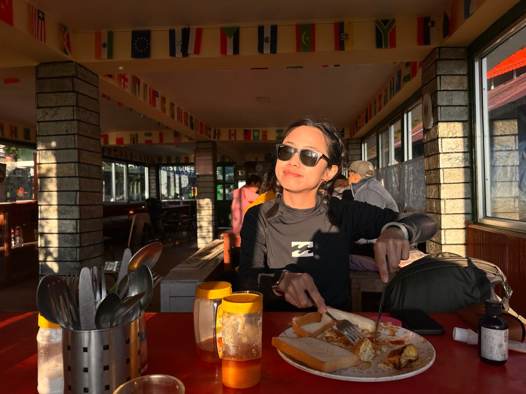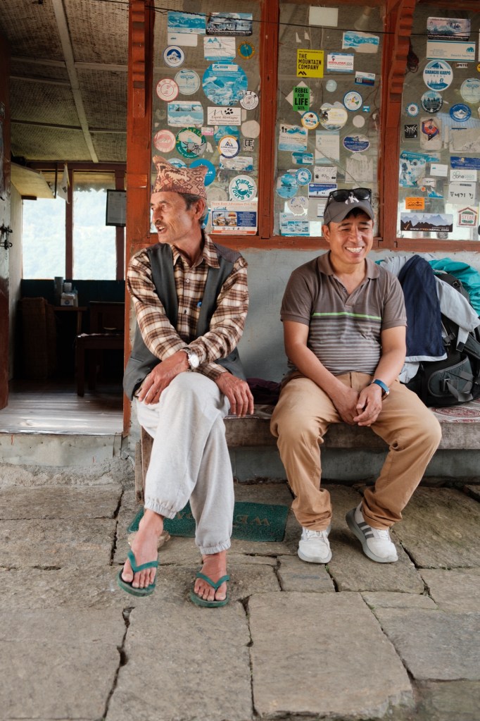 By the time we reach tea house numero three, we’re ready for some rest. It turns out this is the most basic of the tea houses, but it’s still a cool place to stay. No showers or hot water, but the communal dining room has wood burning stove where you can dry clothes. The view is also incredible from where we sit for dinner. Saujan somehow always managed to bag the best table in the corner of each dining room, next to a window.