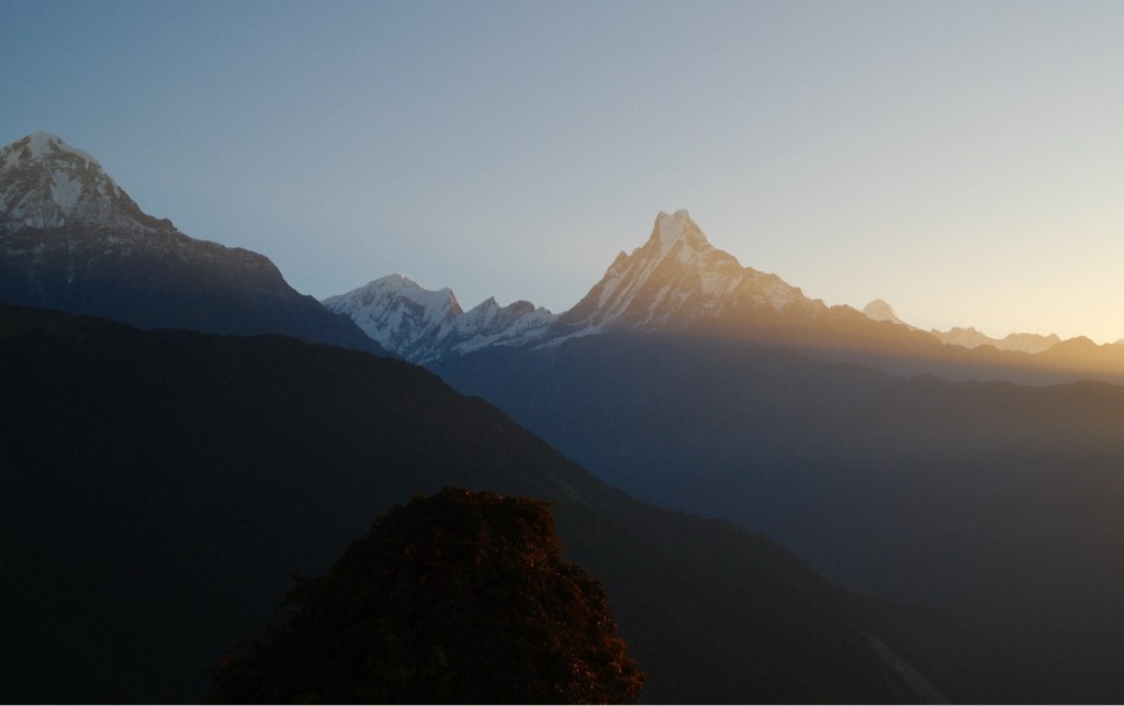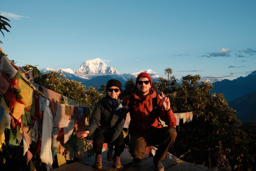 Summit day. We awake at 5am to get ready for the quick ascent to poon hill, which should take 30-45 minutes. It’s a popular hike, so the masses are on the trail too. We wear a few too many layers and instantly get too hot, but we know it’ll be cold when standing watching the sunrise at the top.
