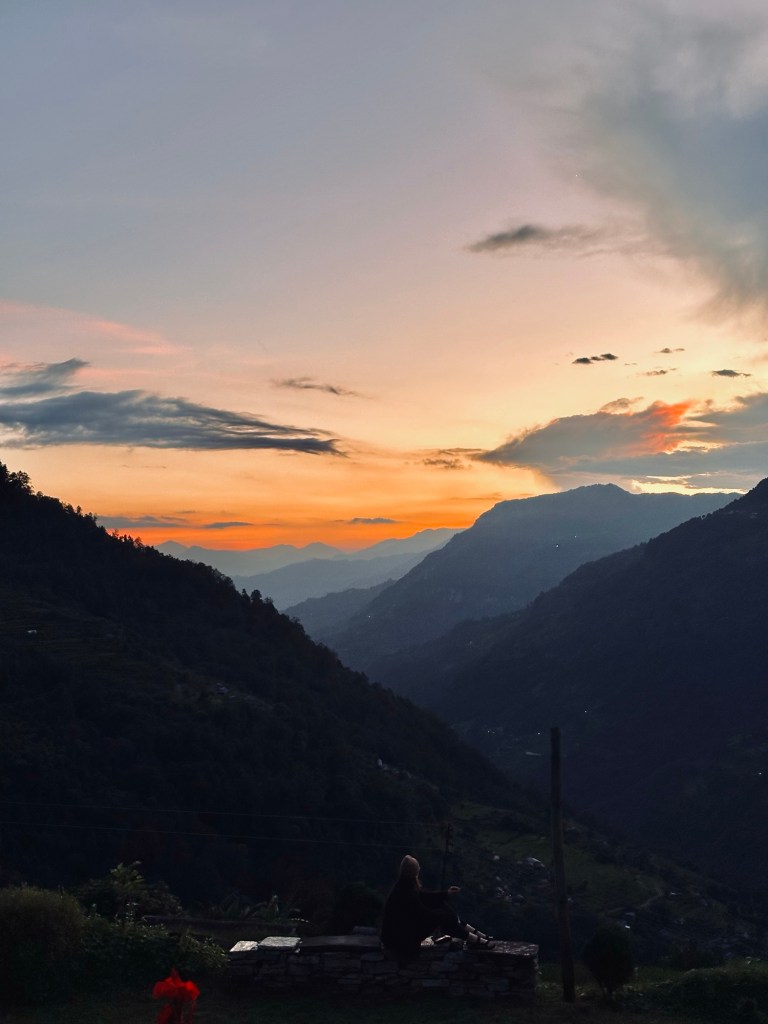 Our first tea house in a village called Tolka, where we’re we’ll sleep, ticks all the boxes, it’s positioned in a small village with panoramic views up and down the valley. Our room is basic, as expected, but it does have its own bathroom. We get an amazing sunset before eating inside a communal hall where other hikers and tours are dining too.