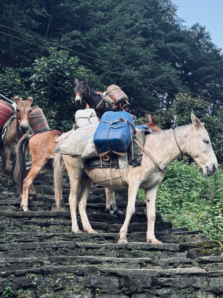 It’s time to descend. Saujan is a little vague on distance and timing. First step is picking up our bags up from the tea house and grabbing some breakfast. The day feels endless, we’re 99% going downhill, and the majority of that is a relentless set of stone steps. Apparently 3,000 of them. It was amazing watching all the people go the other way. We’re both really glad that our route didn’t involve the steps on the way up.