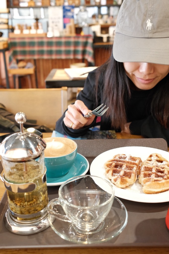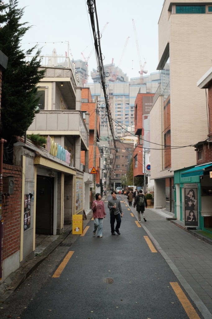 I pondered what neighbourhood to stay in for a few weeks, being a bit indecisive on what we were looking to achieve during our time in Seoul, but in the end, I decided budget-friendly, lively, and artsy was what we needed – Hongdae it was. There were lots of good vibes on arrival; our friendly hostel owner allowed us to check in early as I think he could tell how exhausted we looked after our red-eye flight from Hanoi, landing at 6 a.m. – and perhaps my pasty ill complexion increased our patheticness. To celebrate, we ate waffles and drank good coffee in a nearby café which had been around for decades – the owners famous for how they roast the beans.