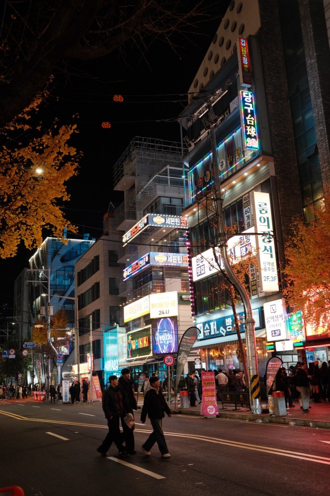 Hongdae is full of bars and karaoke places, and everyone is having a great time. It’s fun to walk around and soak it all in. I was wise to the fact that beauty products and services would without a doubt find a way of making an appearance while in South Korea, as it is a topic Carmen is passionate about. We didn’t even make it through one day without visiting the famous Olive Young – the shop that sells it all. And it certainly wasn’t the only visit 🫠