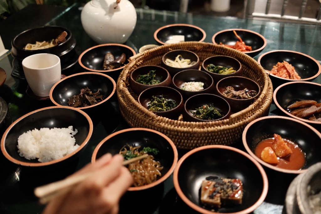 South Korea isn’t all that veggie-friendly, but there’s still plenty to eat if you work around it, and to soften the experience, we went to a traditional Korean restaurant that specialised in all things vegetarian food. We hadn’t banked on just how many courses of food would appear, but it was a good experience. The restaurant cum-art gallery had someone playing the piano for the entire time we were there.