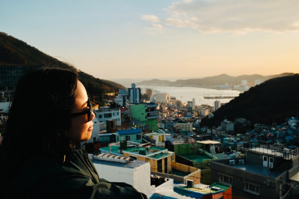 We visited a now-popular neighbourhood known for its colourful houses on a hill with a view of the ocean named Gamcheon Village. Built on a steep hill, it’s known as ‘Korea’s Santorini’ and the ‘Machu Picchu’ of Busan. Families were originally moved to Gamcheon post-war, with the area growing in size over the decades. It’s now a designated cultural hub for arts, following a facelift around 15 years ago.