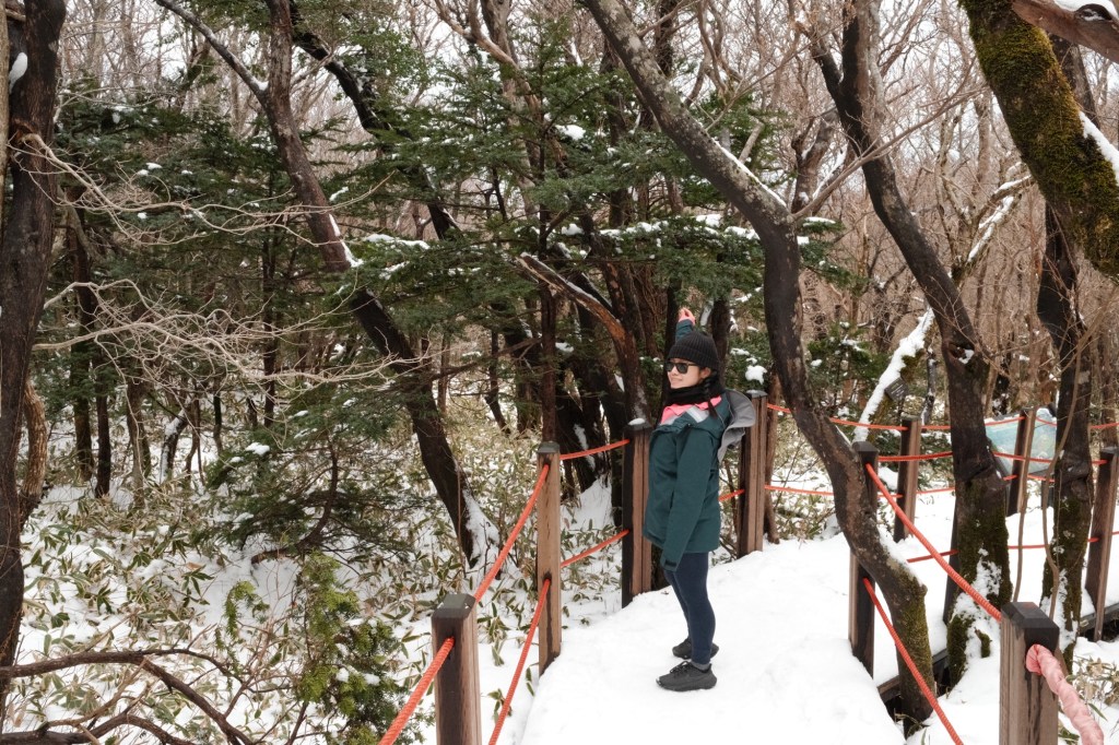 Now, I think Carmen and I are easily fit enough to get up and down Mount Hallasan, but on viewing the returning hikers making their way back into the car park (they probably set off at 6am), we realise we might have underestimated the conditions. They were fully kitted out with crampons and ice axes strapped to their backpacks. Maybe we weren’t quite prepared, and it was good we were turned away 😂