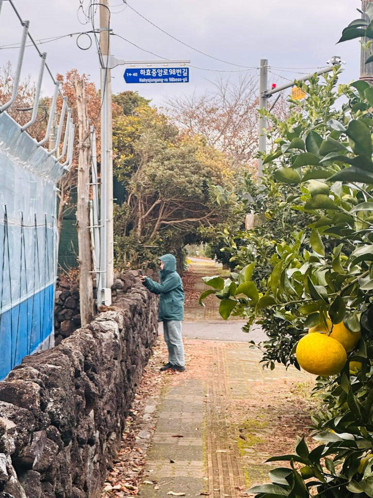 We’d be spending the next couple of nights on the south of the island in Seogwipo, so we slowly drove in that direction, stopping at a few coffee places and a matcha tea farm (which Carmen was very happy about). By this point, we started to notice the Jeju oranges growing everywhere, so were keen to buy some when we could.