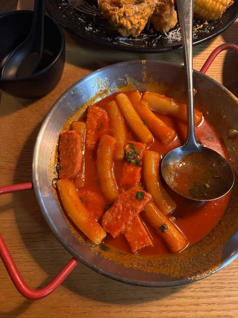 - Eat Tteokbokki – rice nocchi-like dumplings in a tomato sauce (best eaten with beer or Soju).