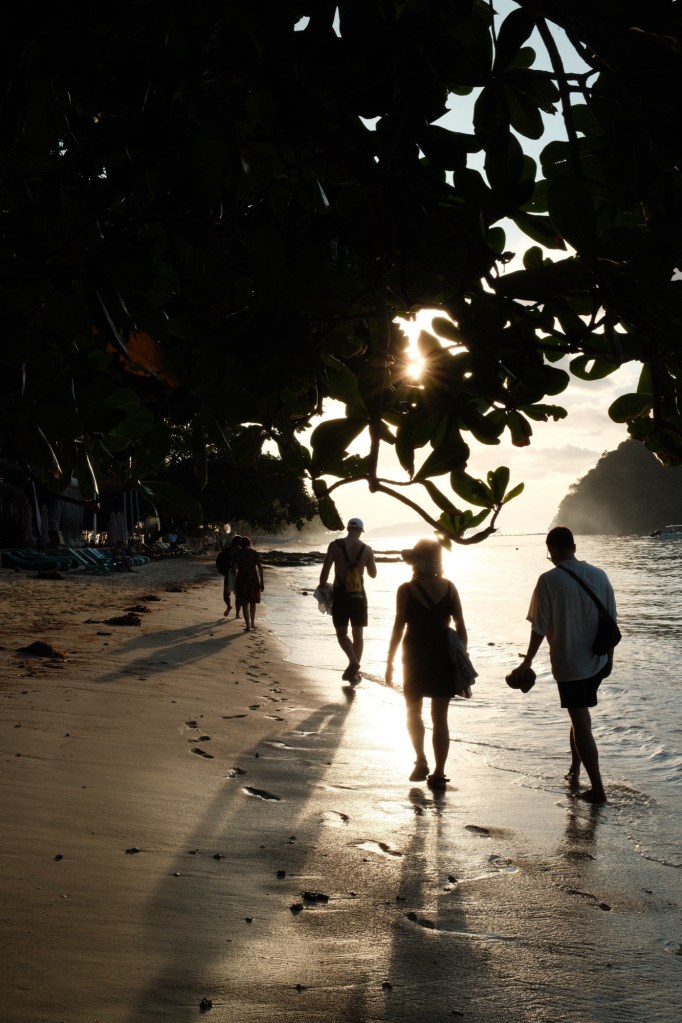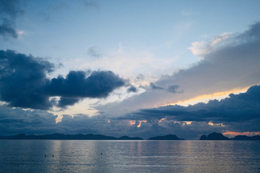 We spent the final evening in El Nido on the beach near our hotel, watching the sunset, and Carmen hunted out a good place for dinner “nearby.” After a long walk that ended with us scaling what seemed to be the biggest peak on the island, we found the hostel-cum-restaurant that would serve us dinner. It had a bit of a strange vibe, but we were fed, and they even drove us back to civilisation.
