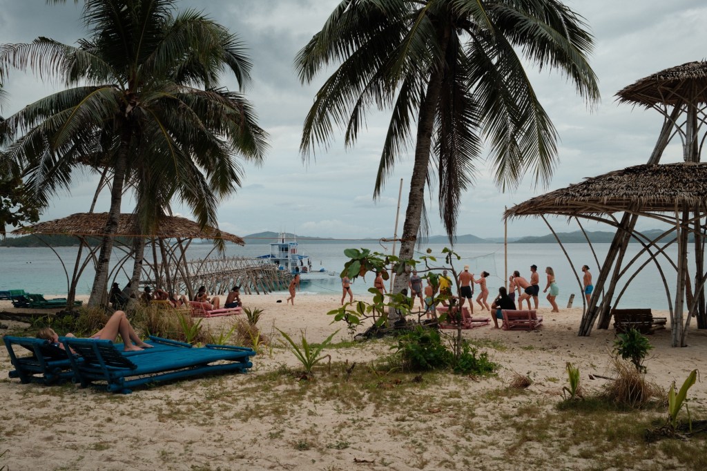 Time on board the boat was relaxing. You could sit and read, listen to music, chat to your new shipmates, or have a nap. The agenda was loose. The scenery was beautiful, we sailed by many islands that make up the Palawan archipelago, all covered in dense green forest with Conde Naste Traveller white sand beaches and the odd building. The plan was to camp at three different islands, but also make stops at a few others to eat lunch, swim, and explore. The sailing channels or routes weren’t busy. I can only recall seeing a handful of other boats, and some were the other Tao expeditions. We spotted people fishing in small traditional boats, not dissimilar to the structure of our boat – a main hull with what appears like two big skis strapped to either side of it, catamaran-like.