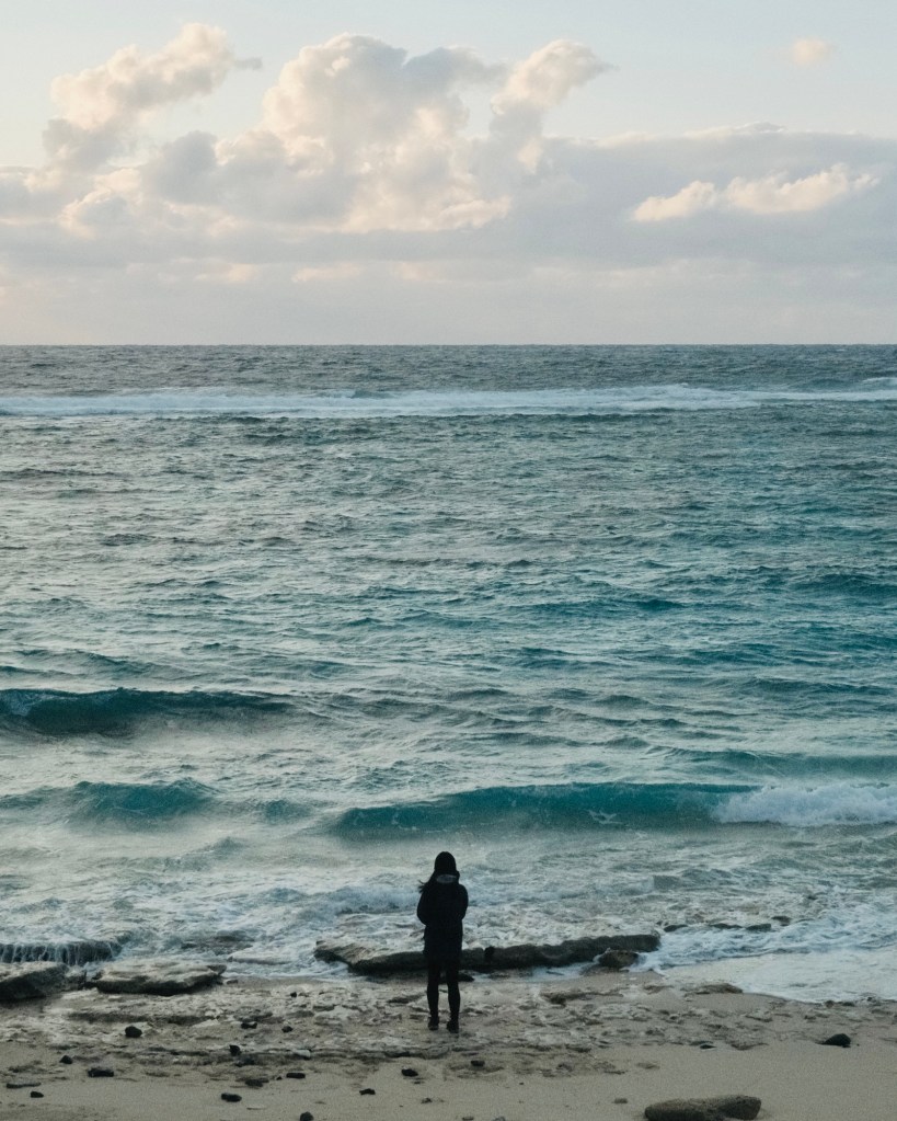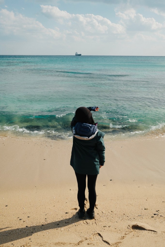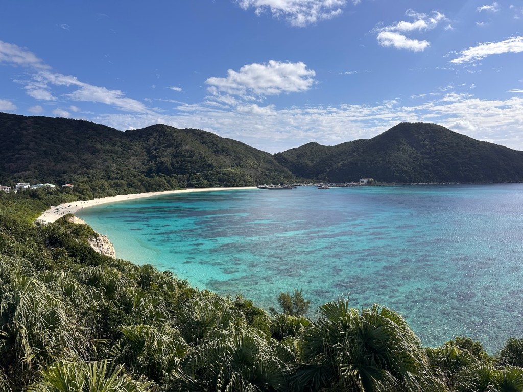 We took a ferry to nearby Tokashika Island the next morning. We wanted to visit the island next to it, Zamami, but our planned ferry was cancelled due to high winds affecting the route. It didn’t matter though, as we swiftly bought different tickets to the next ferry leaving for Tokashika, and we were pleasantly surprised when arriving, especially as we didn’t know a thing about the place. Tokashika is a small, peaceful island with a few small villages and hamlets scattered around. We faffed about a little when we arrived and missed the only bus going round the island, but luckily another bus turned up to shuttle us and a few others (I presume bus b comes into action in situations like this 😂). We got off on the other side of the island at a serene, turquoise beach. We scrambled over some rocks and wandered around before grabbing lunch at one of two places that were open for business. We had taco rice, which is a common menu item in Okinawa because of the many Americans who have lived here since the 1950s, created to serve their thirst for North American cuisine. More on the U.S. in Okinawa later. We decided to walk back to the ferry via another beach, which would take us about an hour.