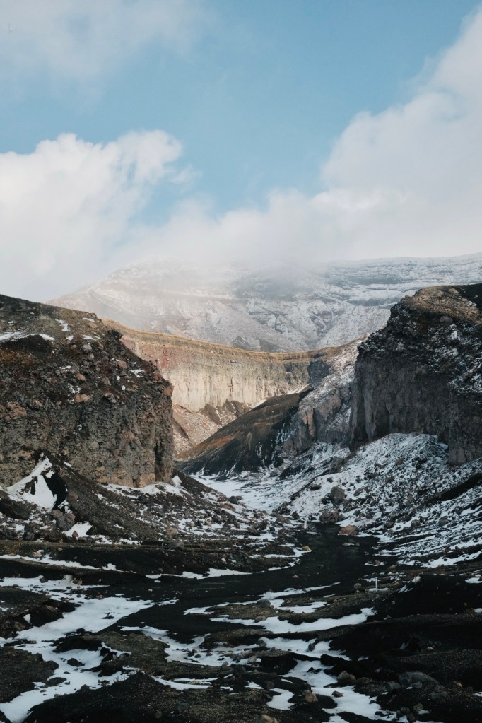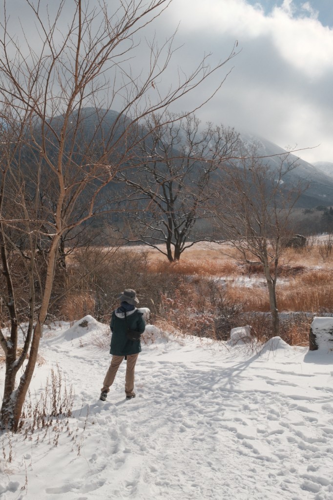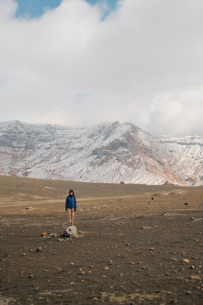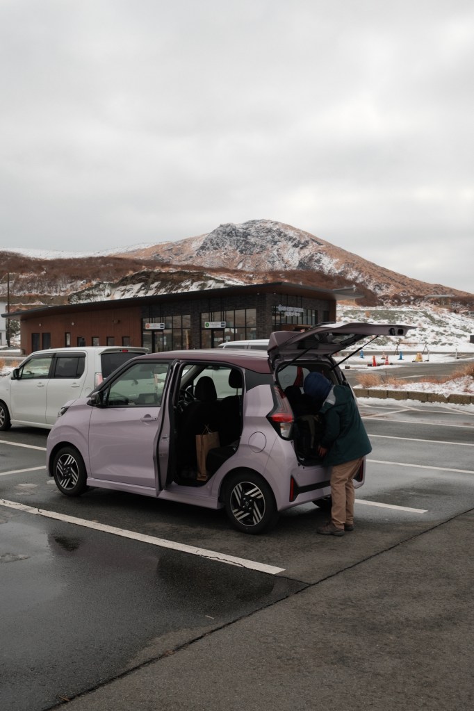We were headed for Mount Aso, the largest active volcano in Japan, and set in the national park of the same name. We made a stop at our new favourite shop, Mont Bell– a Japanese outdoor specialist known for high-quality goods – to pick up some more suitable cold-weather outdoor wear for our time in Japanese winter. Also, the location of my first cultural faux pas – trying on clothes in Japanese clothes stores is an interesting experience. I was entirely unaware that one should take their shoes off to enter the small changing room, even if the floor was not changing between shop and changing space, only separated by a curtain. I was informed by a staff member after exiting the changing room that shoes were very much not allowed when trying on clothes. I’d been doing so well in the country famed for polite processes and respect 😓