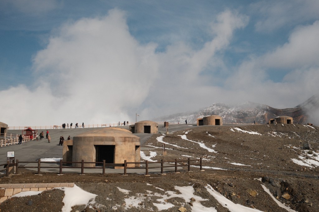 Mount Aso is stunning; you can drive nearly to the top courtesy of a great sweeping road, which was nearly empty when we drove on it in January – I’m informed that during high season it gets super busy with coach tours. At the summit, you’ll find volcano eruption shelters and a small visitor centre. You can wander around the crater and take in the scale via the vast plumes of vapour escaping into the atmosphere. And yes, it smells pretty bad. We enjoyed standing next to the 5-level illuminated sign which shows the danger level at any given moment. It even switched from low to less than low when we were there. A gentle reminder that just the previous evening we’d experienced our visit earthquake warning via our phones – a system that Japan has in place for the whole country. Our building didn’t shake, but it was quite exciting getting the loud warning (and maybe a little scary).