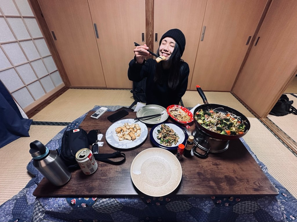 I got to sample my first Japanese hot pot in Beppu, known as Shabu-shabu or Nabe. Quite similar to Chinese hot pot but with slightly different ingredients and sauce flavours. It’s a really fun experience, and one where you eat A LOT. The restaurant we went to also included bonus courses of katsu curry and ice cream on the side. And we couldn’t devour so much delicious food without drinking our new favourite drink of Whisky Highballs. Shabu-shabu is quite a meaty experience normally, but I could just pick veg and tofu for my broth.