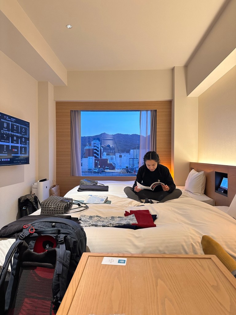 Kitted out with the finest Japanese outdoor gear, we headed to our hotel nearby. This was our first onsen hotel. Onsen hotels feature natural hot baths courtesy of the thermal volcanic water deep underground. More often than not, you’ll find communal baths separated by gender, the kind where you need to get naked with everyone else – we’ll return to this subject later. Our onsen hotel was, in fact, another variation where we got our own private onsen to use, which limited any potential embarrassment, for now.