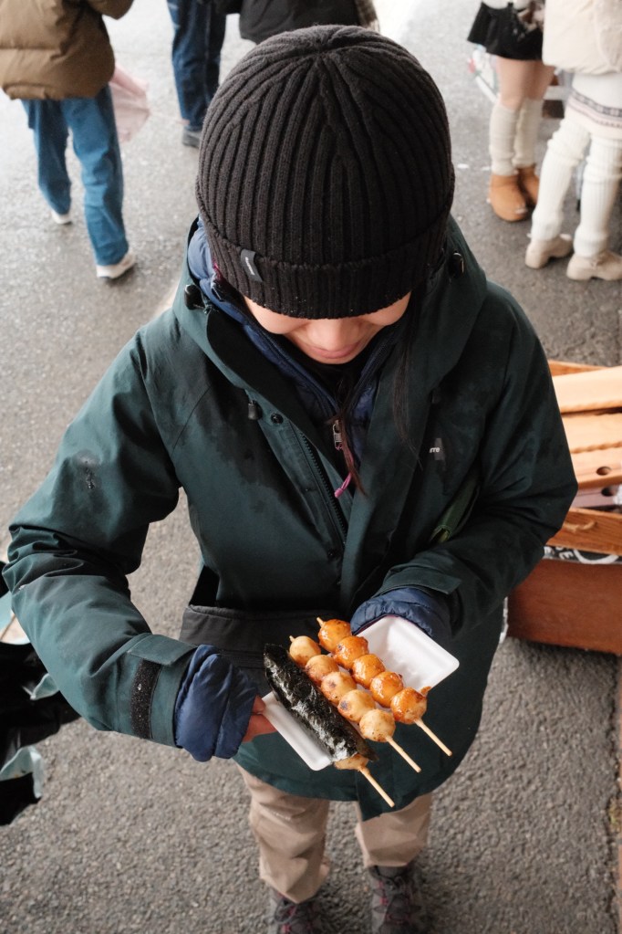 The next day, we devoured a traditional Japanese breakfast and got on our way. First stop was the town of Takayama, where we stopped for a wander through the shopping streets. We stopped at a cool sake shop where you could sample loads of different varieties via an automated dispensing machine. We loaded a card with some yen and got sampling. The price of sake in Japan is such good value, as there’s so much available and it’s a staple of life. We also ate Mitarashi Dango skewers (rice balls) and bought some cookies.