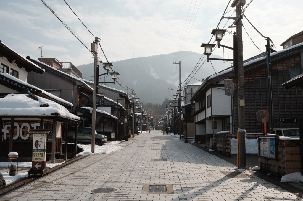 As soon as we left Matsumoto, the mountain scenery kicked in, beautiful alpine vistas all around. And in typical Japanese fashion, loads of super long tunnels cutting through the hills. The roads were quiet and the snow was manageable, even if the car sounded a little weak when trying to climb some of the ascents. I think the engine was less than one litre! 🫣