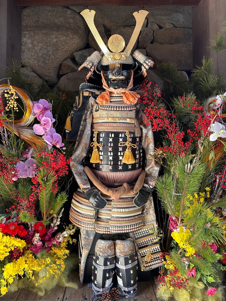 After landing, we visited the castle, where we had to take our shoes off to walk around several FREEZING wooden floors with only our socks on. After taking a masterclass in Japanese weaponry, courtesy of a special exhibition in the castle, we quickly checked out the view from the top and retreated back to our shoes. It’s worth saying that the Edo period (1600-1860-ish) in Japan is fascinating. It’s when a lot of the castles were built, and it hosts many tales of warriors, feuding families, and assassins!