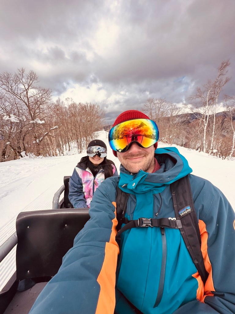 Passes and gear hire were more expensive but still a bit less than European prices. It was the first time we couldn’t borrow goggles, so we had to fork out for a pair each. The mountain was great though, loads of good runs. You could easily spend a week here, with enough variation and new places to check out each day. There were also quite a few on-mountain restaurants to pick from. We opted for katsu curry and saki. For the biggest resort in Japan, it still wasn’t that busy, on a European resort scale.