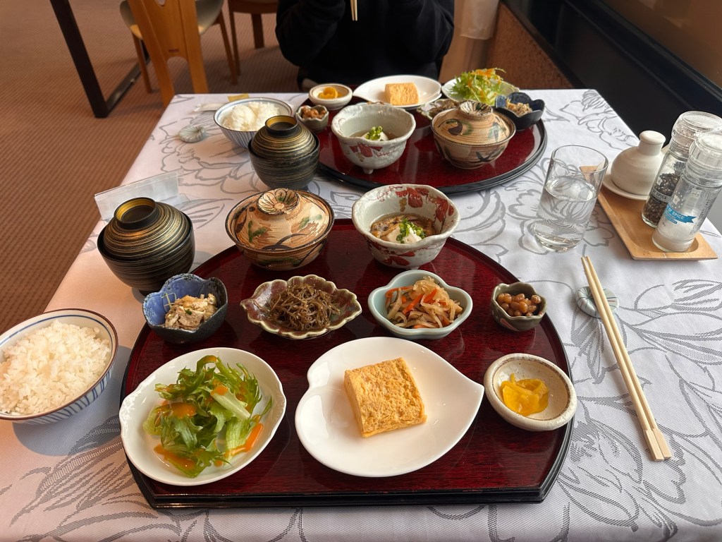 We woke the next morning to find the hotel did in fact have other guests, but not many. Our breakfast was western style, and to Carmen’s disappointment, other guests were being served a traditional Japanese breakfast – after enquiring why we had western, we were informed they varied what was served on different days and we would be getting Japanese the next morning. 😅 Carmen was relieved!