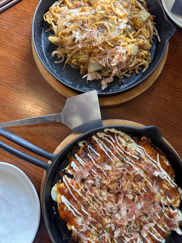 We found an amazing okonomiyaki restaurant in the centre of Furano town. We’d craved okonomiyaki throughout our travels in Japan but failed to find an open restaurant serving it. Fried pancake-style noodles cakes with a variety of fillings, covered in Kewpie mayo and brown sauce 👌