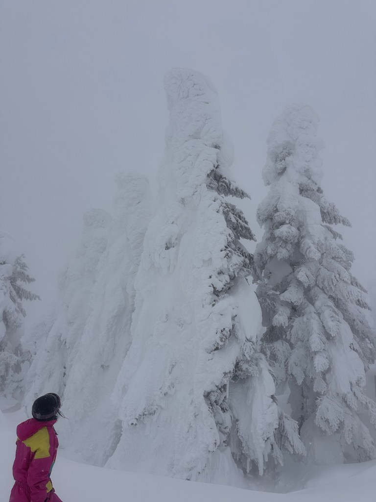 Visibility was low, and winds were high— everything you’re looking for in a ski experience 😅. We also discovered huge queues to get up the mountain, partly because there’s big demand from non-skiers to see the “snow monster” trees. As the lift line was so big, we took advice from a local worker to traverse the mountain using an alternative set of ski lifts to reach the top of the mountain. This was great advice, and we had some fun runs on the way. The gradient was nice, and the piste was wide.