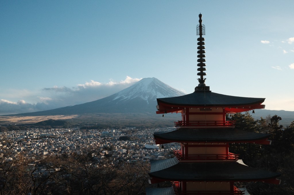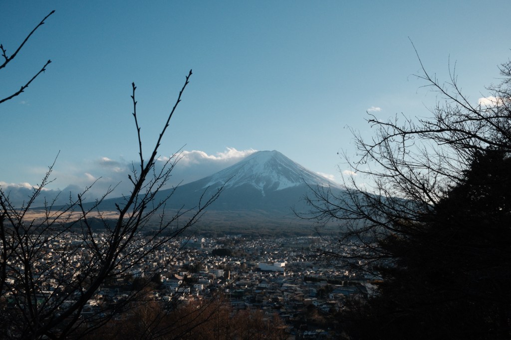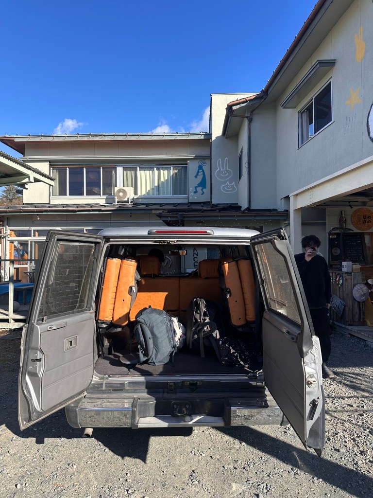 We arrive in the town of next to Mount Fuji and we’re swiftly picked up by our guest house host in a very cool vintage Toyota Land Cruiser, a sight you’ll frequently see in Japan. The guest house is in the perfect location in a smaller village with unobstructed views of Fuji. The owner and host took over the reigns from his grandparents around 10 years ago and has curated a relaxing space where you’re free to cook and hang out, and gaze endlessly at Fuji and beyond. We hear that’s it’s actually a bit tricky to get a clear view of Mount Fuji in many months of the year, due to cloud and mist. We’re there in winter which is generally the best time to see it, with the added bonus it’s also quieter with more people choosing to visit in the blossom weeks and summer.